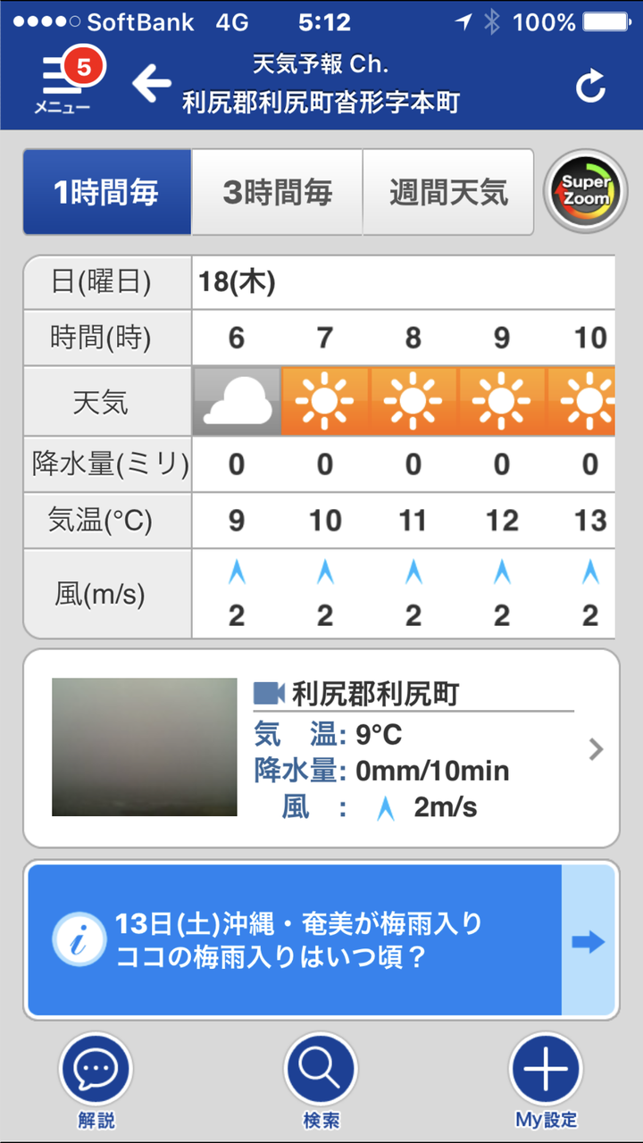 ウエザーニュースのアラームが鳴る、見てみると本降りの雨雲が云々。 予報では8時頃...