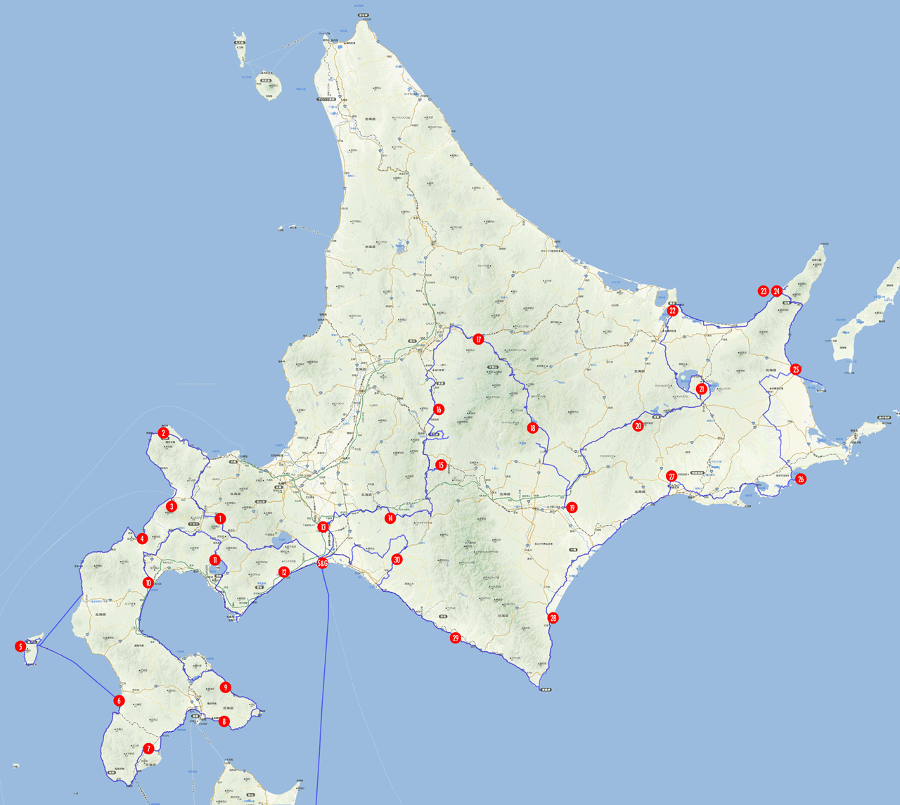 走ったコースをプロット 11日目 苫小牧フェリーターミナル → 京極スリーユーパ...